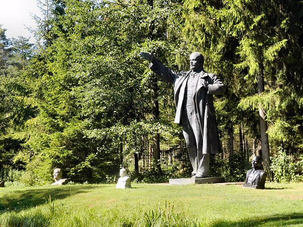 Na de overnachting in het bos, wel vlak bij een kerkhof… gaan we de bossen van Zuid-Litouwen in. Via Varéna belanden we in Grūto parkas, ook wel Stalin World genoemd. Hier heeft een particulier in een bosperceel standbeelden uit de Sovjettijd verzameld. In kleine gebouwen zijn duizend artefacten uit die periode bijeengebracht. We vinden dit een heel interessant en geslaagd bezoek. |