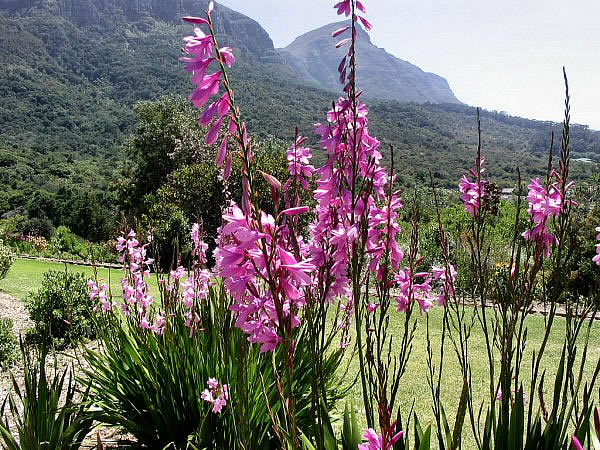 Johan probeert voor deze laatste dag de excursie naar Robben Eiland te regelen, Bart wil ook meegaan. Dit lukt inderdaad nog. De rest van ons besluit om eerst de stad in te wandelen waar het die zondagochtend heel rustig is. Het is lekker in het parkje langs de Governmentlaan, men voelt dat dit een warme dag gaat worden. De anders zo talrijke taxi’s laten zich niet zien zodat we een taxi bellen dat ons naar Kirstenbosch brengt. Dit deel van Kaapstad ligt zo’n 15 km aan de andere kant van de Tafelberg en is bekend vanwege de botanische tuin.
